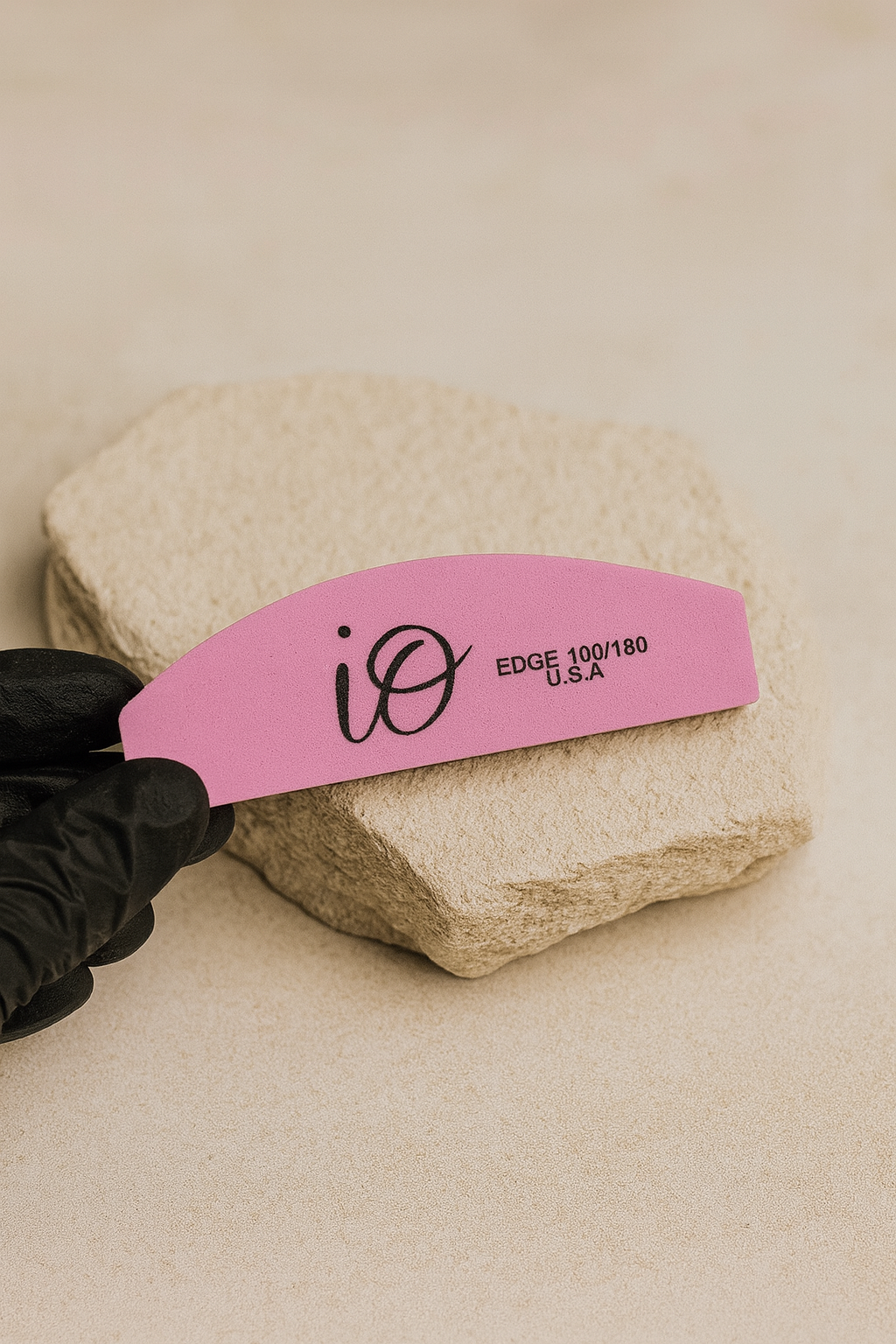 iO Mini Nail File 100/180 Grit – Washable & Disinfectable Half-Moon Emery Board, Pink