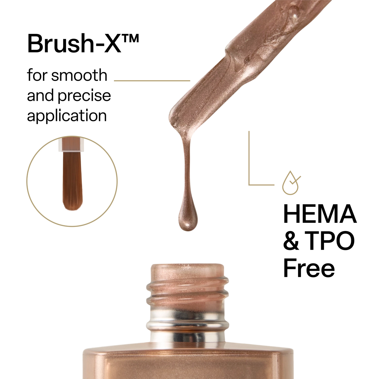 Plus, each shade comes with our game-changing Brush-X™ in-bottle. Made of dense PBT fibers and inspired by Japanese art brushes, Brush-X™ makes it easier for you to achieve a precise, even application every time.